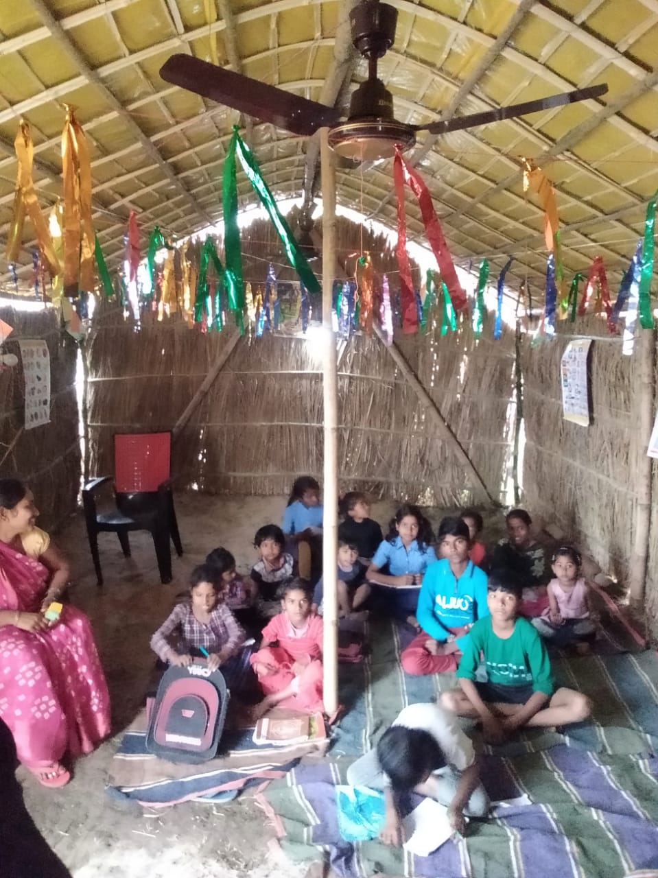 In February 2023, we built a large bamboo hut to serve as a school, church and meeting place for the villagers. We installed electricity allowing for light and overhead fans.